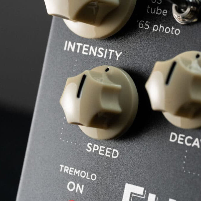Flintはこの組み合わせを再現するスタジオクラスの高品位ペダルです。人気があり定番のトレモロ回路とリバーブ回路を徹底的に調べ尽くし、複雑な音のレイヤーや細かなニュアンスまで、独自のアルゴリズムによって忠実に再現することに成功しました。 Flintは一方にトレモロ、もう片方にリバーブを搭載した、1台で2台分のエフェクターなのです。